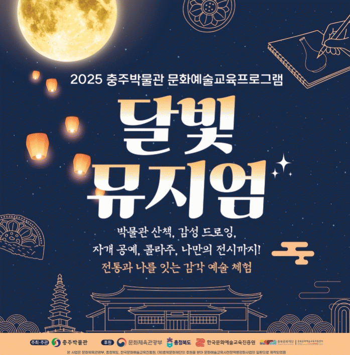 ¡®´Þºû ¹ÂÁö¾ö¡¯Àº ÃæÃ»ºÏµµ¿Í ÃæºÏ¹®ÈÀç´ÜÀÌ ÁÖ°üÇÏ´Â ¡®2025 ¹®È¿¹¼ú±³À°»ç ÇöÀ忪·®°È»ç¾÷¡¯¿¡ ¼±Á¤µÇ¾î µµºñ 3õ2¹é¸¸ ¿øÀ» Áö¿ø¹Þ¾Æ ÃæÁÖ¹Ú¹°°ü¿¡¼ ¿î¿µÇÏ´Â ÇÁ·Î±×·¥ÀÌ´Ù.