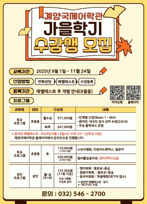 À̹ø Çбâ´Â 11¿ù 22ÀϱîÁö ¿î¿µµÇ¸ç, Ãʵî»ýºÎÅÍ ¼ºÀαîÁö ´Ù¾çÇÑ ¿¬·ÉÃþÀ» ´ë»óÀ¸·Î ¿µ¾î Áß½ÉÀÇ ±³À° ÇÁ·Î±×·¥ÀÌ °³¼³µÈ´Ù.