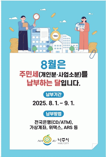 8¿ù Áֹμ¼(°³ÀκÐ)´Â 7¿ù 1ÀÏ ±âÁØ ³ªÁֽÿ¡ ÁÖ¼Ò¸¦ µÐ ¼¼´ëÁÖ¿¡°Ô 1¸¸ 1õ ¿ø(±³À°¼¼ Æ÷ÇÔ)ÀÌ ºÎ°úµÇ¸ç ¿À´Â 8¿ù 16ÀϺÎÅÍ 9¿ù 1ÀϱîÁö ³³ºÎÇÏ¸é µÈ´Ù.