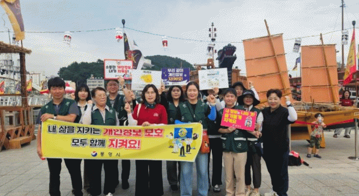 Á¤º¸Åë½Å°úÀåÀ» ºñ·ÔÇÑ Á÷¿øµéÀº Çö¼ö¸·°ú ÇÇÄÏÀ» µé°í ÃàÁ¦ Çà»çÀåÀ» ´©ºñ¸ç °³ÀÎÁ¤º¸ º¸È£ Ä·ÆäÀο¡ ³ª¼¹À¸¸ç, °³ÀÎÁ¤º¸ º¸È£ ¹®±¸°¡ ºÎÂøµÈ È«º¸¹°À» °ü±¤°´°ú ½Ã¹Îµé¿¡°Ô ³ª´² Áá´Ù.