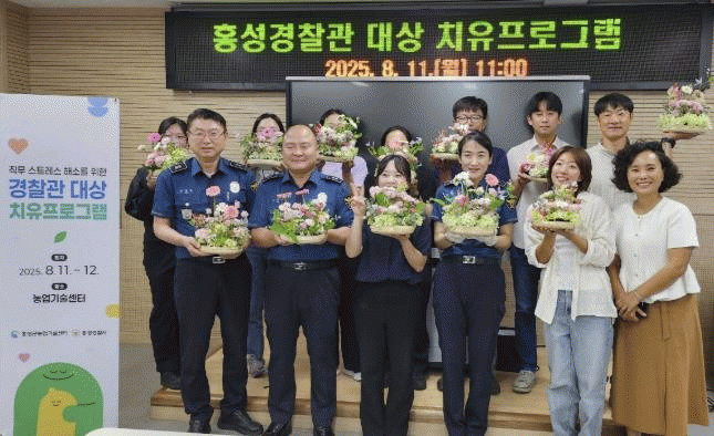 À̹ø ÇÁ·Î±×·¥Àº È«¼º±º³ó¾÷±â¼ú¼¾ÅÍ¿Í È«¼º°æÂû¼°¡ ³ó¾÷¡¤³óÃÌÀÇ ´Ù¿øÀû °¡Ä¡ ÀÌÇØ ¹× ´õ¿í °Ç°ÇÑ È«¼º ±¸ÇöÀ» À§ÇÑ ¾÷¹«Çù¾àÀ» ü°áÇÔ¿¡ µû¶ó Ä¡À¯ÇÁ·Î±×·¥À» Á¦°øÇÏ°í »óÈ£ ±³·ù¸¦ ¸ñÀûÀ¸·Î °ø°ø¾ÈÀü ÇöÀå¿¡¼ Á÷¹« ½ºÆ®·¹½º¸¦ °Þ°í ÀÖ´Â °æÂû°ü 40¿© ¸íÀ» ´ë»óÀ¸·Î ÀÌ·ç¾îÁ³´Ù.
