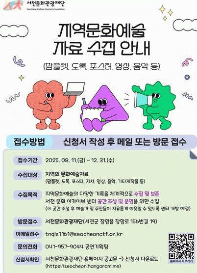 ÀÚ·á´Â ÆÊÇ÷¿, µµ·Ï, Æ÷½ºÅÍ, Àú¼, ¿µ»ó, À½¾Ç, ±âŸ Á¦ÀÛ¹° µî Áö¿ª ¹®È¿¹¼ú ±â·Ï¹°·Î, ÃßÈÄ ¼öÁýµÈ ÀڷḦ Ȱ¿ëÇÏ¿© ¿¹¼ú°¡ ¹× ÁֹεéÀÌ ÀÚÀ¯·Ó°Ô ÀÌ¿ëÇÒ ¼ö ÀÖ´Â ¾ÆÄ«À̺꼾Å͸¦ ±¸Ãà ÇÒ ¿¹Á¤ÀÌ´Ù.