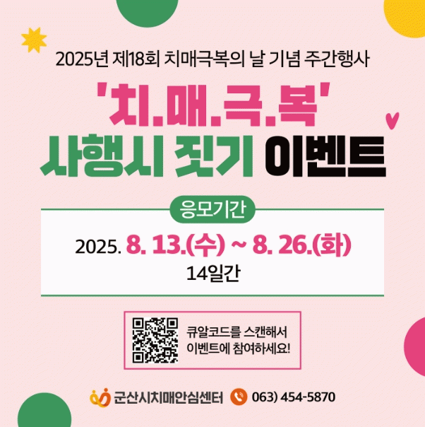 ¡®Ä¡¸Å ±Øº¹¡¯ »çÇà½Ã Çà»ç´Â ±º»ê½Ã¹Î ´©±¸³ª Âü¿©Çϰí ÀÀ¸ðÇÒ ¼ö ÀÖÀ¸¸ç, Ä¡¸Å Àνݳ¼±À» À§ÇÑ ÀÚÀ¯·Î¿î ÁÖÁ¦¸¦ ´ã¾Æ ¡®Ä¡.¸Å.±Ø.º¹¡¯ »çÇà½Ã¸¦ ÀÛ¼ºÇÏ¸é µÈ´Ù. ÀÀ¸ð ±â°£Àº 8¿ù 13ÀÏ~26ÀϱîÁöÀÌ´Ù.