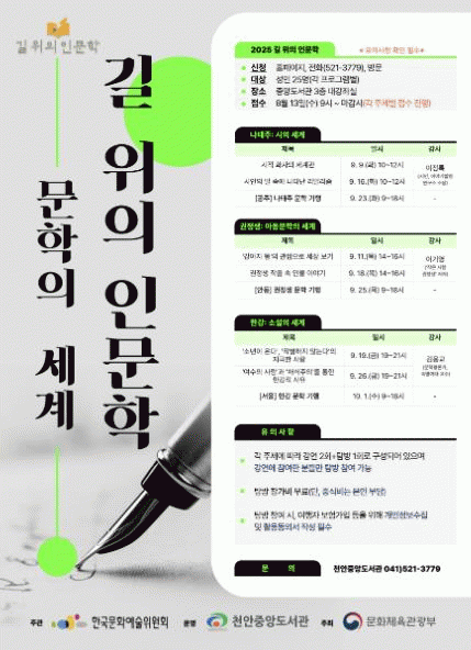 Áß¾Óµµ¼°üÀº ¹®ÈüÀ°°ü±¤ºÎ°¡ ÁÖÃÖÇϰí, Çѱ¹¹®È¿¹¼úÀ§¿øÈ¸°¡ ÁÖ°üÇÏ´Â ¡®2025 ±æ À§ÀÇ Àι®ÇС¯ °ø¸ð»ç¾÷¿¡ ¼±Á¤µÅ Àι®ÇÐ ÇÁ·Î±×·¥À» ¿î¿µÇÏ°Ô µÆ´Ù.