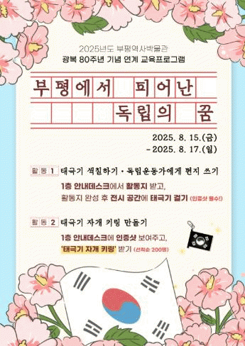 À̹ø ÇÁ·Î±×·¥Àº ¹Ú¹°°ü ³» Àü½Ã½Ç Ȱµ¿Áö¸¦ ÅëÇØ °ü¶÷°´µéÀÌ ºÎÆò¿¡¼ Ȱµ¿ÇÑ µ¶¸³¿îµ¿°¡µé¿¡ ´ëÇØ ¾Ë¾Æº¸´Â ½Ã°£À» °®µµ·Ï ±¸¼ºµÆ´Ù.