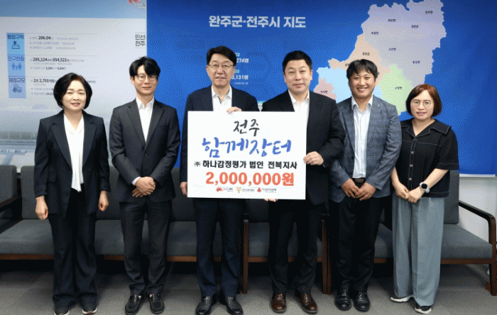 ¢ßÇϳª°¨Á¤Æò°¡¹ýÀÎ ÀüºÏÁö»ç(´ëÇ¥ ±èâ¹è)´Â 12ÀÏ ÀüÁÖ½ÃÀå½ÇÀ» ¹æ¹®ÇØ ¡®ÀüÁÖÇÔ²²ÀåÅÍ¡¯ ¿î¿µ ±âºÎ±Ý 200¸¸ ¿øÀ» Àü´ÞÇß´Ù.