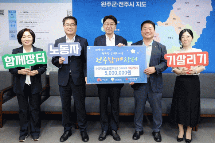 ¿ì¹ü±â ÀüÁÖ½ÃÀåÀº ¡°±â¾÷°ú ³ëµ¿Á¶ÇÕÀÌ ÇÔ²²ÇÑ À̹ø ±âºÎ°¡ ÀüÁÖÀÇ ³ëµ¿ÀÚ¿Í Áö¿ª »ó±Ç ¸ðµÎ¿¡°Ô Å« ÈûÀÌ µÉ °Í¡±À̶ó¸ç ¡°ÀüÁֽô ¾ÕÀ¸·Îµµ ¡®ÀüÁÖÇÔ²²ÀåÅÍ¡¯¸¦ ÅëÇØ ´õ ¸¹Àº °ø°¨°ú ¿¬´ë¸¦ À̲ø¾î³»°Ú´Ù¡±°í ¸»Çß´Ù.
