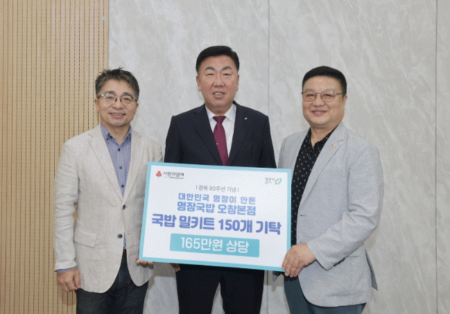 ¸íÀå±¹¹äÀº ±¤º¹È¸ ûÁÖ½ÃÁöȸ¿Í ûÁÖ¿¡ °ÅÁÖ ÁßÀÎ »çÇÒ¸° µ¿Æ÷¸¦ À§ÇØ 165¸¸¿ø »ó´çÀÇ ±¹¹ä ¹ÐŰƮ 150°³¸¦ ÈÄ¿øÇß´Ù. ±¹¹ä ¹ÐŰƮ´Â ÃæºÏ»çȸº¹Áö°øµ¿¸ð±Ýȸ¸¦ ÅëÇØ ÁöÁ¤ ±âʵе¶¸³À¯°øÀÚ À¯Á· ¼ö±ÇÀÚ¿¡ Áö¿øµÈ´Ù.