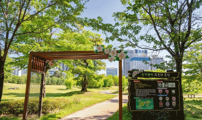 ¼±¸ Á¤ºÎ´ëÀüû»ç µéÀǰø¿ø ¡®¹«±Ãȱº¶ô¡¯Àº ºÓÀº»ö¡¤Èò»ö ¹«±ÃÈ¿Í ÀüÅë ±â¿Í´ã, »êÃ¥·Î°¡ Á¶È¸¦ ÀÌ·ç¾î ½Ã¹Îµé¿¡°Ô ½°°ú »ç»öÀ» ¼±»çÇÑ´Ù.