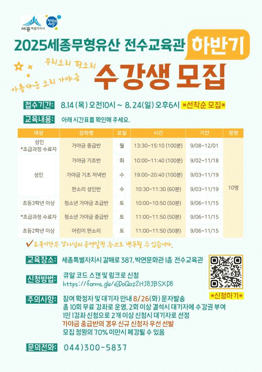 °Á´ ¿À´Â 9¿ù 2ÀϺÎÅÍ 12¿ù 1ÀϱîÁö ¾à 3°³¿ù°£ Àü¼ö±³À°°ü(¹Ú¿¬¹®È°ü 1Ãþ)¿¡¼ ÃÑ 10ȸ ¹«·á·Î ÁøÇàµÈ´Ù.
