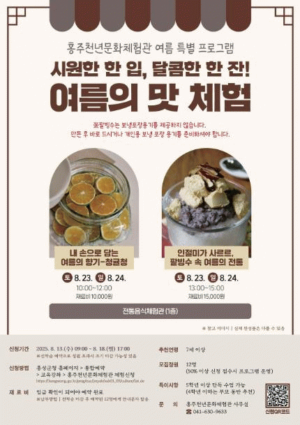 À̹ø ÇÁ·Î±×·¥Àº ÀüÅë ¶± ÀÎÀý¹Ì¸¦ ÀçÇØ¼®ÇÑ ÆÏºù¼ö ¸¸µé±â¿Í û±ÖÀ» Ȱ¿ëÇÑ ¼öÁ¦ °úÀÏû üÇèÀ¸·Î ¸¶·ÃµÇ¾î, Âü°¡ÀÚµéÀÌ ¿ì¸® °íÀ¯ÀÇ ¸ÀÀ» Á÷Á¢ ´À³¢°í ¿©¸§Ã¶ °Ç°ÇÑ ¸Ô°Å¸®¸¦ Áñ±æ ¼ö ÀÖµµ·Ï ÁغñµÆ´Ù.