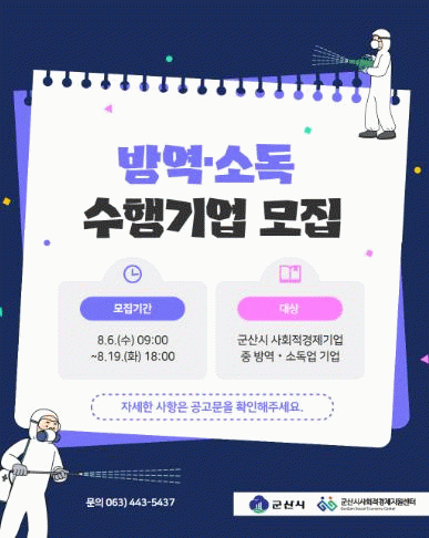 ½Åû ±â°£Àº 19ÀϱîÁö·Î, ½Ã´Â ±â°£ ³»¿¡ ¹æ¿ª¡¤¼Òµ¶À» ¼öÇàÇÒ »çȸÀû°æÁ¦ ¼öÇà±â¾÷°ú ¹æ¿ª¡¤¼Òµ¶ ¼ºñ½º¸¦ Áö¿ø¹ÞÀ» »çȸÀû°æÁ¦ Âü¿©±â¾÷À» µ¿½Ã¿¡ ¸ðÁýÇÒ ¿¹Á¤ÀÌ´Ù.