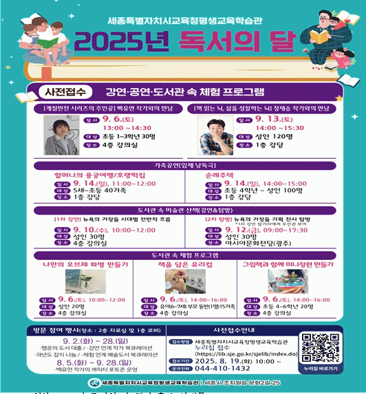 Æò»ý±³À°ÇнÀ°ü¿¡¼´Â ÀÛ°¡¿ÍÀÇ ¸¸³², °¡Á·ÀÌ ÇÔ²²ÇÏ´Â °ø¿¬, µµ¼°ü ¼Ó üÇè ÇÁ·Î±×·¥ µî ´Ùä·Î¿î ÇÁ·Î±×·¥À» ÁغñÇß´Ù.
