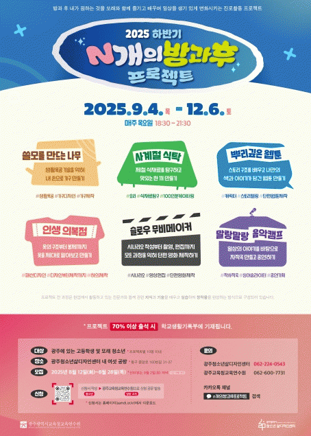 ¡®N°³ÀÇ ¹æ°úÈÄ ÇÁ·ÎÁ§Æ®¡¯´Â ÇлýµéÀÌ ¹æ°ú ÈÄ¿¡µµ âÀÇÀû Áø·Î Ȱµ¿À» À̾ ¼ö ÀÖµµ·Ï Áö¿øÇϰíÀÚ ¸¶·ÃµÆÀ¸¸ç, ±³À°¿¬¼ö¿ø°ú »îµð°¡ Çù·ÂÇØ 10³â° ¿î¿µÇÏ´Â ÇÁ·Î±×·¥ÀÌ´Ù.