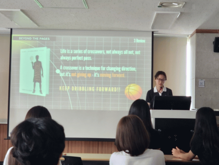 ÁßÇлýÀ» ´ë»óÀ¸·Î ÇÑ Beyond The Pages(¹®ÇÐÀÛǰÀ¸·Î ¸¸³ªº¸´Â ¹Ì±¹¹®ÈüÇè) ¼ö¾÷¿¡¼´Â ÈæÀΠû¼Ò³âÀÇ ¼ºÀå±â¸¦ ´Ù·é ¿ø¼¸¦ ÇÔ²² ÀÐ°í ³ ÈÄ, ¹ßǥȸ¸¦ ÅëÇØ ÇлýµéÀÌ Á÷Á¢ ¹Ì±¹ ÈæÀΠû¼Ò³âµéÀÌ »ç¿ëÇÏ´Â ¿µ¾î ½À°üÀÇ ¿ª»ç¸¦ Á¶»çÇÏ¿© ¹ßÇ¥Çϰí Ã¥¿¡ ´ëÇÑ ¼Ò°¨À» ¿µ½Ã·Î ÀÛ¼ºÇÏ¿© ¹ßÇ¥ÇÏ´Â µî ¼öÁØ ³ôÀº ¼ö¾÷À» ÅëÇØ ÇÑ ´Ü°è ¼ºÀåÇÏ´Â ½Ã°£À» °¡Á³´Ù.