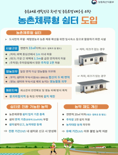 ¡®³óÃÌ Ã¼·ùÇü ½°ÅÍ¡¯´Â ¿¬¸éÀû 33§³ ÀÌÇÏÀÇ °¡¼³°ÇÃ๰·Î µµ½Ã¹ÎÀÌ ³óÃÌ¿¡¼ ÀÏÁ¤ ±â°£ ¸Ó¹«¸£¸ç ³ó¾÷À» üÇèÇϰųª ¿©À¯¸¦ Áñ±æ ¼ö ÀÖµµ·Ï ¼³°èµÈ Àӽà ¼÷¼ÒÀÌ´Ù.