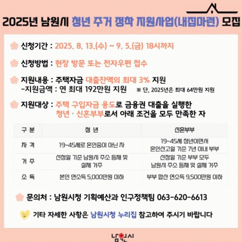 À̹ø Áö¿øÀº û³â°ú ½ÅÈ¥ºÎºÎÀÇ ÁÖ°Å ºÎ´ãÀ» ´ú¾î °áÈ¥°ú Ãâ»ê ¹®È¸¦ Àå·ÁÇϰí, ¾ÈÁ¤ÀûÀÎ Á¤ÁÖ È¯°æÀ» Á¶¼ºÇϱâ À§ÇØ ¸¶·ÃµÆ´Ù.