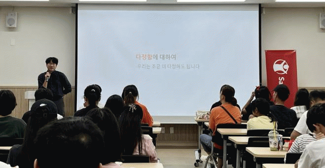 ±è¹Î¼· ÀÛ°¡´Â ¡®Ã»¼Ò³â¿¡°Ô ÀüÇÏ´Â ³ª´ä°Ô »ç´Â À̾߱⡯¶ó´Â ÁÖÁ¦·Î °¿¬À» ÆîÃÆÀ¸¸ç, ÀڽŸ¸ÀÇ ¼Óµµ¿Í ¹æ½ÄÀ¸·Î ÇູÀ» ã¾Æ°¡´Â »îÀÇ Á߿伺À» À̾߱âÇϸç ÇлýµéÀÇ Å« °ø°¨À» ¾ò¾ú´Ù.