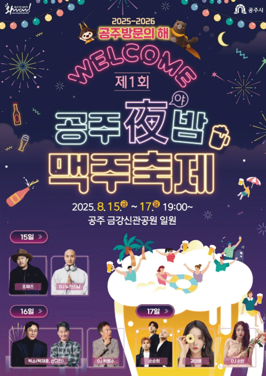 8¿ù 15ÀϺÎÅÍ 17ÀϱîÁö 3Àϰ£ ¿¸®´Â À̹ø ÃàÁ¦´Â ¸ÅÀÏ ¿ÀÈÄ 7½ÃºÎÅÍ ¹ã 10½Ã±îÁö ¿î¿µµÇ¸ç, °øÁÖ½ÃÀÇ ·ÎÄà ¸ÆÁÖ¿Í ÀüÅëÁÖ, ´Ù¾çÇÑ ¸Ô°Å¸®, °ø¿¬ ÇÁ·Î±×·¥ÀÌ ¾î¿ì·¯Á® °ü¶÷°´¿¡°Ô Ưº°ÇÑ °æÇèÀ» ¼±»çÇÒ ¿¹Á¤ÀÌ´Ù.