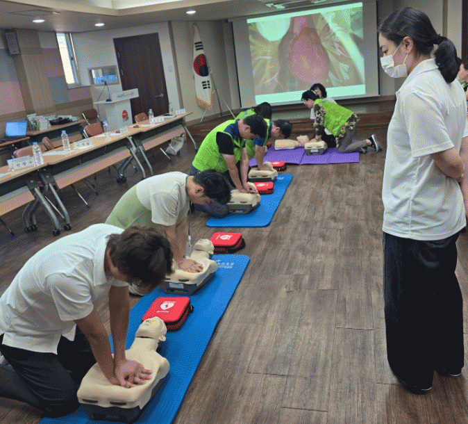 ´ëÇÑÀû½ÊÀÚ»ç ¼Ò¼ÓÀÇ Àü¹® °»ç(ÀÌÁö¿¬ °»ç)°¡ ³ª¼ ¡â½ÉÁ¤Áö ȯÀÚ ¹ß»ý ½Ã ´ëó ¿ä·É ¡â½ÉÆó¼Ò»ý¼ú(CPR) À̷С¤½Ç½À ¡âÀÚµ¿½ÉÀåÃæ°Ý±â(AED) »ç¿ë¹ýÀ» »ç·Ê Áß½ÉÀ¸·Î ¼³¸íÇϸç, Àü¹®ÀûÀ̰í Èï¹Ì·Ó°Ô ±³À°À» ÁøÇàÇß´Ù.