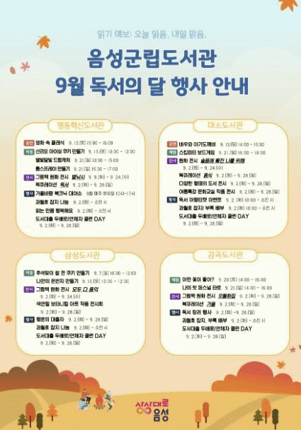 ÀÌ ¿Ü¿¡µµ À½¼º±º¸³µµ¼°ü 4°³°ü¿¡¼ µµ¼ ¿øÈ Àü½Ã¿Í ºÏÅ¥·¹À̼Ç, µµ¼ ´ëÃ⠵ιè·Î/¿¬Ã¼ÀÚ Å¬¸° DAY¸¦ ÁøÇàÇØ ´Ù¾çÇÑ µ¶¼¡¤¹®È üÇèÀÇ ±âȸ¸¦ Áö¿ª Áֹε鿡°Ô Á¦°øÇÒ ¿¹Á¤ÀÌ´Ù.