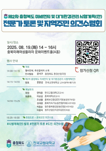 À̹ø Çà»ç´Â ¹Ì¼¼¸ÕÁö Àú°¨ ¹× ´ë±âȯ°æ °³¼±À» À§ÇÑ Á¤Ã¥ ¹æÇâ°ú ÁßÁ¡ °úÁ¦¸¦ µµ¹Îµé¿¡°Ô ¾Ë¸®°í, Çаè¿Í »ê¾÷°è, ½Ã¹Î´Üü µî ´Ù¾çÇÑ ºÐ¾ß Àü¹®°¡ÀÇ ½Éµµ ÀÖ´Â Åä·Ð°ú Áö¿ª ÁֹΠÀÇ°ß ¼ö·ÅÀ¸·Î ÁøÇàµÈ´Ù.