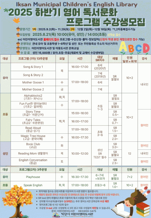 ½Ã´Â ÀÍ»ê½Ã¸³¾î¸°ÀÌ¿µ¾îµµ¼°ü(ICEL)¿¡¼ ¿À´Â 9¿ùºÎÅÍ 12¿ù±îÁö ÇϹݱ⠿µ¾îµ¶¼¹®È°Á¸¦ ¿î¿µÇÑ´Ù°í 18ÀÏ ¹àÇû´Ù.