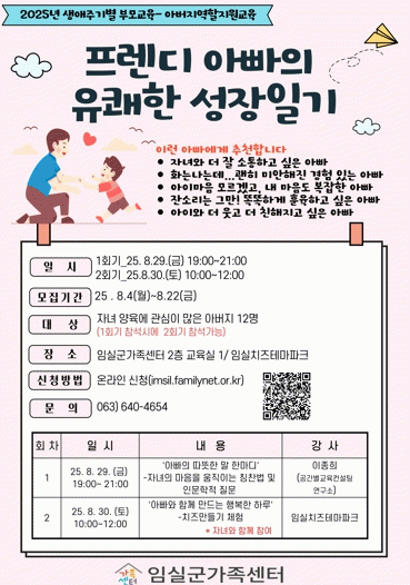 ¾Æ¹öÁö ±³À° 1ȸ±â´Â 29ÀÏ Àú³á 7½Ã ÀӽDZº°¡Á·¼¾ÅÍ ±³À°½Ç¿¡¼ ÁøÇàµÇ¸ç, ÀÌÁ¾Èñ °ø°£º°±³À°ÄÁ¼³ÆÃ¿¬±¸¼ÒÀåÀ» ÃÊÃ»ÇØ¡®ÀÚ³àÀÇ ¸¶À½À» ¿òÁ÷À̴ ĪÂù¹ý ¹× Àι®ÇÐÀû Áú¹®¡¯À» ÁÖÁ¦·Î °ÀǸ¦ ÁøÇàÇÑ´Ù.