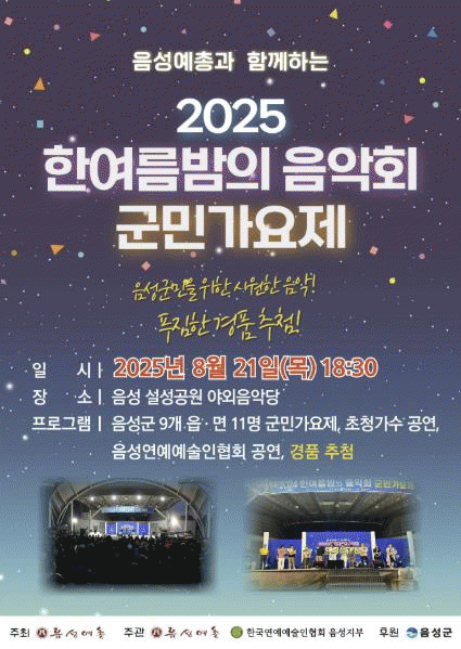 À̹ø Çà»ç´Â À½¼º¿¹ÃÑ ÁÖÃÖ¡¤ÁÖ°üÀ¸·Î °ø¿¬ÀåÀ» ã±â ¾î·Á¿î ¹®È ¼Ò¿Ü°èÃþÀ» ºñ·ÔÇØ ¸ðµç ±º¹ÎÀÌ À½¾ÇÀ¸·Î ¹«´õÀ§¸¦ Àذí Ȱ·ÂÀ» µÇãÀ» ¼ö ÀÖµµ·Ï ¸¶·ÃµÆ´Ù.