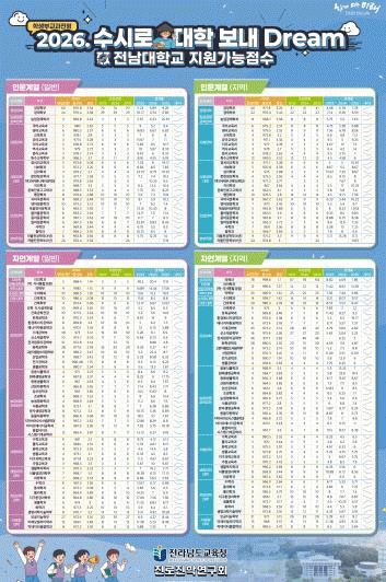 Àü³²±³À°Ã» Áø·ÎÁøÇבּ¸È¸´Â ÀÌ·¯ÇÑ »óȲÀ» ¹Ý¿µÇØ ÀÇ¿¹°ú ÇÕ°Ý °¡´É Á¡¼ö¸¦ ¡ã ¿¬¼¼´ë ÃßõÇü ÀÇ¿¹°ú: 98.75Á¡ (1.05µî±Þ) ¡ã °í·Á´ë Çб³ÀåÃßõ Àǰú´ëÇÐ: 79.88Á¡ (1.1µî±Þ) ¡ã Àü³² Áö¿ªÀÎÀç ÀÇ¿¹°ú: Àü³²´ë 998.6Á¡ (1.1µî±Þ), Á¶¼±´ë 498.75Á¡ (1.3µî±Þ) µîÀ¸·Î ¿¹ÃøÇß´Ù.