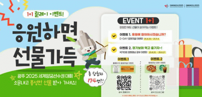 ´ëȸ °³¸·ÀϱîÁö ³²Àº Àϼö¸¦ Ȱ¿ëÇÑ ÀÀ¿ø ´ñ±ÛÀ» ÀÛ¼ºÇØ Âü¿©ÇÒ ¼ö ÀÖÀ¸¸ç, À̺¥Æ® Á¾·á ÈÄ ¿¡¾îÆÌ, ¾Æ¿ô¹é »óǰ±Ç, Ä¿ÇÇÄíÆùÀ» ÃßÃ·ÇØ ÁõÁ¤ÇÑ´Ù.