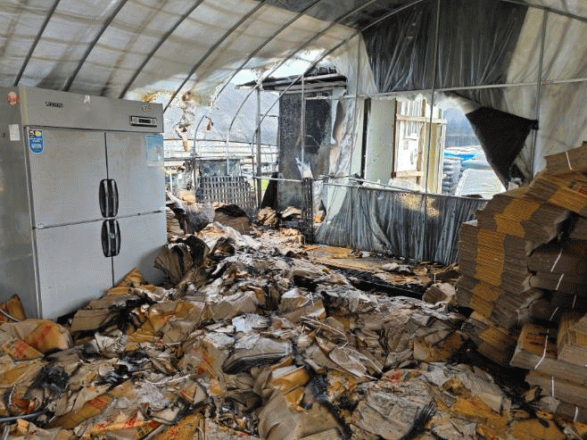 ¼Ò¹æ¼´Â ¹ßÈÁöÁ¡ Àα٠³ÃÀå°í, ȯdz±â µî Àü±â ¹è¼±ÀÌ ¿¬°áµÈ ¸ÖƼÄܼ¾Æ®¸¦ Áß½ÉÀ¸·Î ÅºÈ ÈçÀûÀÌ ¹ß°ßµÅ ¹ß»ýÇÑ ½ºÆÄÅ©°¡ ÀÎÁ¢ÇÑ Á¾À̹ڽº¿¡ ÂøÈ¡¤¹ßÈÇÑ °ÍÀ¸·Î ÃßÁ¤Çϳª ÀÚ¼¼ÇÑ ¿øÀÎÀº Á¶»ç ÁßÀÌ´Ù.