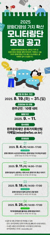 ¸ð´ÏÅ͸µ´Ü ¸ðÁýÀοøÀº 10¸í ³»¿ÜÀ̸ç, ¹®È±âȹÀÚ¿Í ¿¹¼úÀÎÀ» Æ÷ÇÔÇØ ¹®È´Ù¾ç¼º¿¡ °ü½É ÀÖ´Â ¿ÏÁÖ ±º¹ÎÀ̶ó¸é ´©±¸³ª Áö¿ø °¡´ÉÇÏ´Ù.