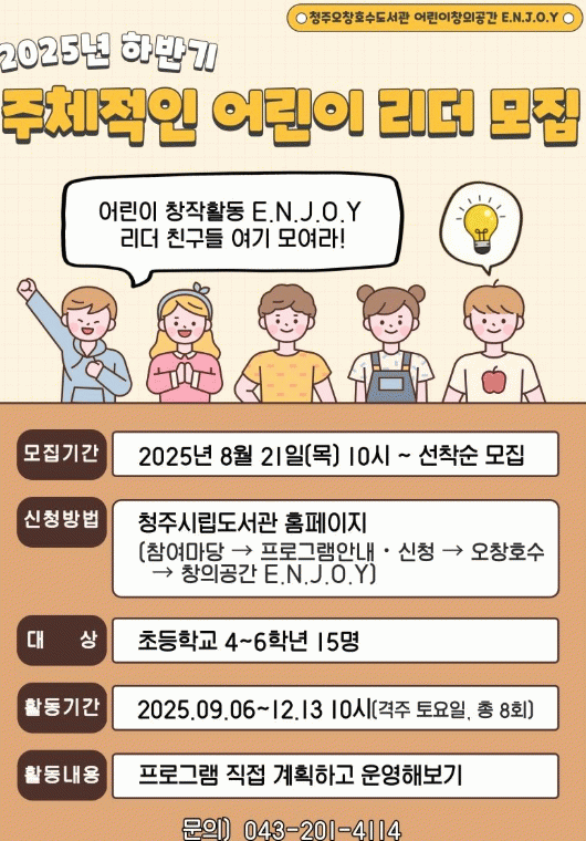 ÃʵîÇб³ 4~6Çг⠾ÀÌ 15¸íÀ» ´ë»óÀ¸·Î ÁøÇàÇÏ´Â À̹ø ÇÁ·Î±×·¥Àº, ¾î¸°À̵éÀÌ ½º½º·Î ¾ÆÀ̵ð¾î¸¦ ³»°í ±âȹºÎÅÍ ¿î¿µ±îÁö Á÷Á¢ Âü¿©ÇÒ ¼ö ÀÖ´Â ±âȸ¸¦ Á¦°øÇÑ´Ù.