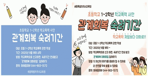 ¡®°ü°èȸº¹ ¼÷·Á±â°£¡¯Àº ÃʵîÇб³ 1~2Çг⠻çÀÌ¿¡¼ Çб³Æø·Â »ç¾ÈÀÌ ¹ß»ýÇßÀ» ¶§, Çб³Æø·Â Àü´ã±â±¸ ½ÉÀÇ¿¡ ¾Õ¼ °ü°èȸº¹ ´ëȸðÀÓÀ» ¿ì¼± ½Ç½ÃÇϰí, ÇØ´ç ¸ðÀÓ Á¾·á ½Ã±îÁö Àü´ã±â±¸ ½ÉÀǸ¦ À¯¿¹ÇÏ´Â Á¦µµÀÌ´Ù.