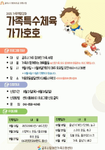 ¡®°¡°¡È£È£¡¯´Â ³ó±¸, Ã౸, ¹èµå¹ÎÅÏ µî °¡Á·ÀÌ ÇÔ²²ÇÒ ¼ö ÀÖ´Â ½Åü Ȱµ¿À» ÅëÇØ °¡Á· °£ ±àÁ¤ÀûÀÎ °ü°è Çü¼º°ú °øÅëÀÇ °æÇè °øÀ¯¸¦ À¯µµÇϰí, À̸¦ ¹ÙÅÁÀ¸·Î Á¤¼Àû ±³°¨ÀÇ ±âȸ¸¦ Á¦°øÇÏ´Â ÇÁ·Î±×·¥ÀÌ´Ù.