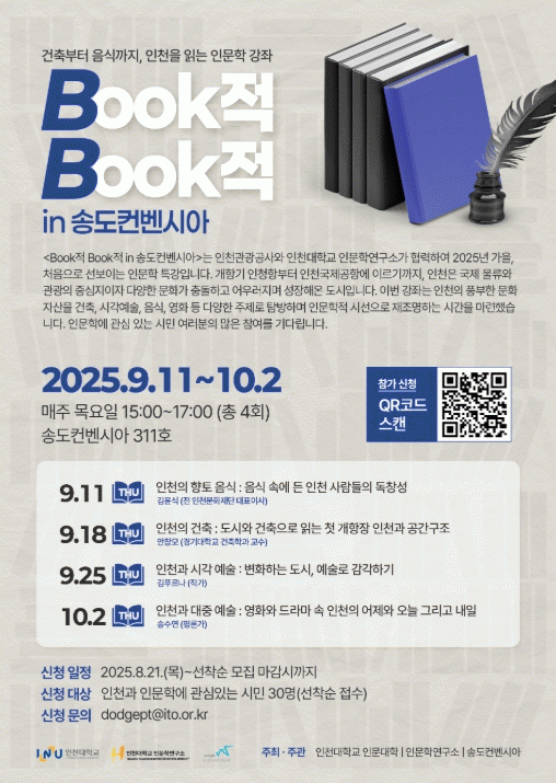 ÀÎõ°ü±¤°ø»ç´Â ÀÎõ´ë Àι®Çבּ¸¼Ò¿Í Çù·ÂÇØ, Àι®ÀÚ»êÀÌ Ç³ºÎÇÑ µµ½Ã ÀÎõÀÇ ¹®ÈÀû °¡Ä¡¸¦ Àι®ÇÐÀû ½Ã°¢À¸·Î Á¶¸íÇÏ´Â °Á¸¦ ¸¶·ÃÇß´Ù. °ÇÃà, ½Ã°¢¿¹¼ú, À½½Ä¹®È, µå¶ó¸¶¡¤¿µÈ µî ´Ù¾çÇÑ ¹®È¿µ¿ª Àü¹®°¡µé°ú ÇÔ²²ÇÏ´Â °ÀǸ¦ ÅëÇØ ½Ã¹ÎµéÀÌ º¸´Ù ±íÀÌ ÀÖ´Â ¹®È üÇèÀ» ÇÒ ¼ö ÀÖµµ·Ï Áö¿øÇÒ ¿¹Á¤ÀÌ´Ù.