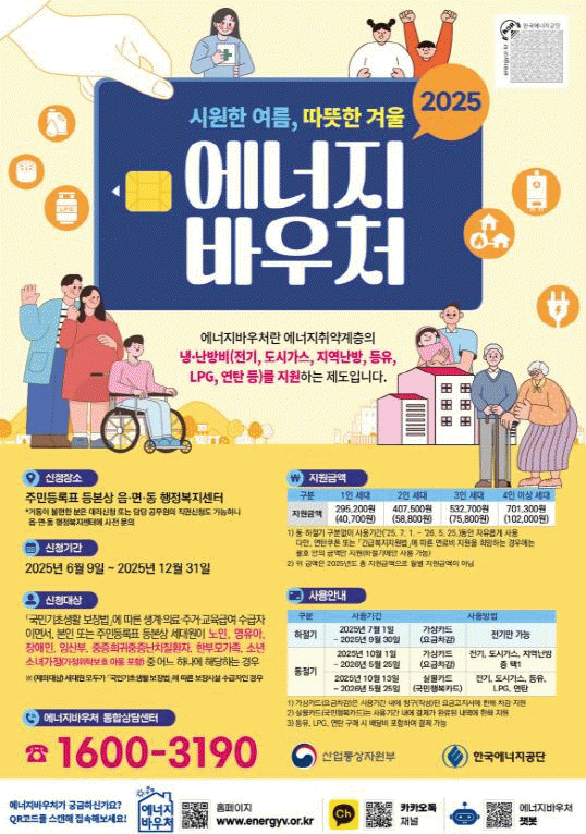 ¿¡³ÊÁö ¹Ù¿ìó(ÀÌ¿ë±Ç) »ç¾÷Àº ³Ã³¹æ¿¡ ÇʼöÀûÀÎ ¿¡³ÊÁö(Àü±â, °¡½º, Áö¿ª³¹æ, µîÀ¯, LPG, ¿¬Åº) »ç¿ë ºñ¿ëÀ» Áö¿øÇÏ´Â Á¦µµ·Î ÇÏÀý±â Àü±â ¿ä±Ý Â÷°¨, µ¿Àý±â ³¹æ ¿¬·á ±¸ÀÔ¿¡ »ç¿ëÇÒ ¼ö ÀÖ´Ù.