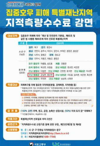 Àû¿ë´ë»óÀº ÁÖ°Å¿ë ÁÖÅÃ, â°í, ³óÃà»ê¡¤»ó¾÷ ½Ã¼³ µî °ÇÃ๰ÀÌ ÀüÆÄ¡¤À¯½ÇµÈ °æ¿ì ÁöÀûÃø·® ¼ö¼ö·á 100% Àü¾×À» °¨¸é¹ÞÀ» ¼ö ÀÖ°í, ±× ¿Ü ÅäÁö µî(ÄÁÅ×À̳Ê, ºñ´ÒÇϿ콺 µî °¡¼³°ÇÃ๰ Æ÷ÇÔ) ÇÇÇØ¸¦ ÀÔÀº °æ¿ì ÁöÀûÃø·® ¼ö¼ö·áÀÇ 50%¸¦ °¨¸é¹ÞÀ» ¼ö ÀÖ´Ù.