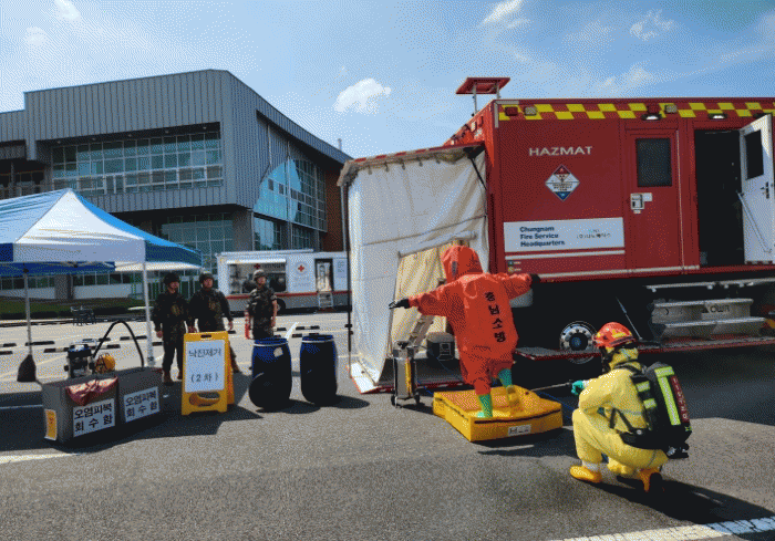 À̹ø ÈÆ·ÃÀº À»ÁöÈÆ·Ã ±â°£ Áß ÁøÇàÇßÀ¸¸ç, ÇÙ Æø°Ý ¹ß»ý »óȲÀ» °¡Á¤ÇØ ÇÇÆøÀÚ Á¦µ¶ µî »çÈİü¸® ÀýÂ÷¸¦ Áß½ÉÀ¸·Î ´ë¿øµéÀÇ ´ëÅ×·¯ ´ëÀÀ ´É·ÂÀ» ³ôÀÌ´Â µ¥ ÃÊÁ¡À» ¸ÂÃè´Ù.