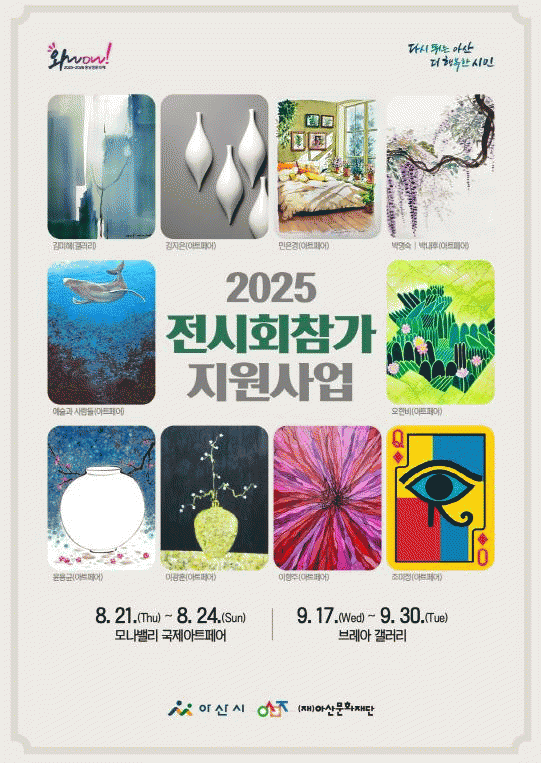 ¸ÕÀú, ¸ð³ª¹ë¸® ¾ÆÆ®Æä¾î ºÎ½º Àü½Ã´Â 2025³â 8¿ù 21ÀϺÎÅÍ 8¿ù 24ÀϱîÁö 4Àϰ£ º¹ÇÕ¹®È°ø°£ ¸ð³ª¹ë¸®¿¡¼ °³ÃֵȴÙ. ºÎ½º Àü½Ã¿¡´Â ÃÑ 9¸í(ÆÀ)ÀÇ ÀÛ°¡°¡ Âü¿©Çϸç, Âü¿© ÀÛ°¡´Â Á¶¹ÌÁ¤, ¹Ú¸í¼÷(¹Ú³»ÈÄ), ¿ÀÇѺñ, ±èÁöÀº, ÀÌÇâÁÖ, À̱¤ÈÆ, À±¿ë±Õ, ¹ÎÀº°æ, ¿¹¼ú°ú »ç¶÷µé(ÀÓ¼±¿ì, ¼°æÀÚ, ±è¼øÀç, ±è¹Ì¼±)ÀÌ´Ù.