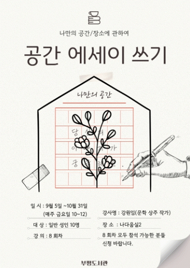 À̹ø ÇÁ·Î±×·¥Àº »óÁÖÀÛ°¡ °¿øÀÓ°ú ÇÔ²² ÀÏ»óÀÇ °ø°£À» »õ·Î¿î ½Ã¼±À¸·Î ¹Ù¶óº¸°í, ±× °ø°£¿¡¼ÀÇ °æÇè°ú ±â¾ïÀ» ¿¡¼¼ÀÌ·Î Ç®¾î³»´Â ±Û¾²±â °úÁ¤À¸·Î ±¸¼ºÇÑ´Ù.