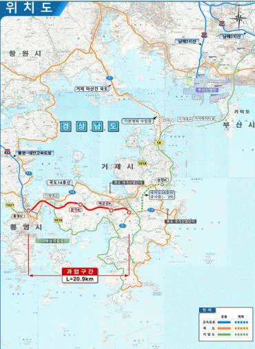 À̹ø »ç¾÷Àº Å뿵 ¿ë³²¸é¿¡¼ °ÅÁ¦ »ó¹®µ¿À» ¿¬°áÇÏ´Â ÃÑ¿¬Àå 20.9kmÀÇ °í¼Óµµ·Î °Ç¼³·Î, ÃÑ»ç¾÷ºñ ¾à 1Á¶ 5õ¾ï ¿øÀÌ ÅõÀԵȴÙ.