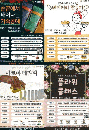ÇÁ·Î±×·¥Àº ½Ç»ýȰ¿¡ Ȱ¿ëÇÒ ¼ö ÀÖ´Â Ãë¹Ì Ȱµ¿À» Áß½ÉÀ¸·Î ¡â°¡Á×°ø¿¹ ¡âÁ¦°úÁ¦»§ ¡â¾Æ·Î¸¶ ¿ä¹ý ¡â²É²ÈÀÌ ÃÑ 4°³ °Á·Π±¸¼ºµÆÀ¸¸ç, û³âµéÀÌ Âü¿©Çϱ⠽±µµ·Ï ÆòÀÏ Àú³á°ú Åä¿äÀÏ ³· ½Ã°£´ë¿¡ ¿î¿µµÈ´Ù.
