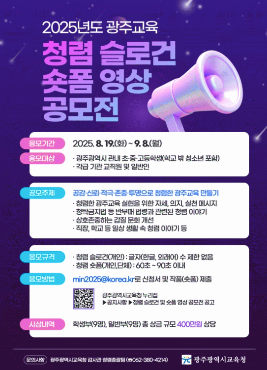 ´ë»óÀº ±¤ÁÖÁö¿ª Çлý, Çб³ ¹Û û¼Ò³â, ±³Á÷¿ø, ÀϹÝÀÎ µîÀ̸ç, ¡®°ø°¨¡¤½Å·Ú¡¤Àû±Ø¡¤Á¸Áß¡¤Åõ¸íÀ¸·Î û·ÅÇÑ ±¤ÁÖ±³À° ¸¸µé±â¡¯¸¦ ÁÖÁ¦·Î ûʱÝÁö¹ý Áؼö, °©Áú ¹®È °³¼±, ÀÏ»ó ¼Ó û·Å ½Çõ µîÀÇ ³»¿ëÀ¸·Î Á¦ÀÛÇÏ¸é µÈ´Ù.