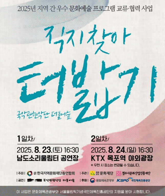ÀÌ¿¡ µû¶ó ûÁÖ¹®ÈÀç´ÜÀÌ Áö¿ª Á¤Ã¼¼ºÀÌ ´ã±ä ¿ì¼ö ¿¹¼ú ÇÁ·Î±×·¥À¸·Î ÃßõÇÑ ¡®Á÷Áö ã¾Æ Å͹â±â¡¯±¹¾Ç°üÇö¾Ç´Ü ´õºÒ¾î½£)°¡ Àü³² ¸ñÆ÷¿¡¼ ¹«´ë¸¦ ¼±º¸ÀÌ°Ô µÆ´Ù.