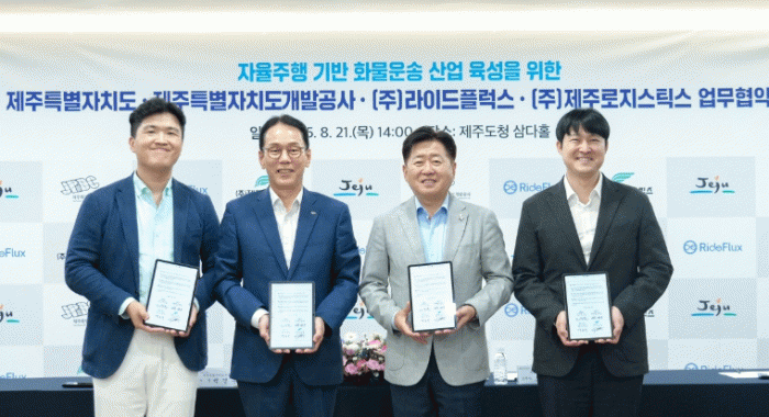 Á¦ÁÖµµ´Â 21ÀÏ µµÃ» »ï´ÙȦ¿¡¼ Á¦ÁÖÆ¯º°ÀÚÄ¡µµ°³¹ß°ø»ç, ÀÚÀ²ÁÖÇà Àü¹®±â¾÷ ¢ß¶óÀ̵åÇ÷°½º, ¹°·ù±â¾÷ ¢ßÁ¦ÁÖ·ÎÁö½ºÆ½½º¿Í ¡®ÀÚÀ²ÁÖÇà ±â¹Ý ȹ°¿î¼Û »ê¾÷ À°¼º¡¯ ¾÷¹«Çù¾àÀ» ü°áÇß´Ù.