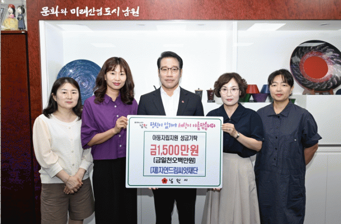 ÃÖ°æ½Ä ³²¿ø½ÃÀåÀº ¡°¾î·Á¿î »óȲ ¼Ó¿¡¼µµ Èñ¸ÁÀ» ÀÒÁö ¾Ê°í ¼ºÀåÇØ ³ª°¥ ¾ÆÀ̵éÀ» À§ÇØ Å«¸¶À½À» ³ª´©¾îÁֽŠÀÚ¿¬µå¸²¾¾¾ÑÀç´Ü¿¡ ±íÀÌ °¨»çµå¸°´Ù¡±¶ó¸ç, ¡°±âŹµÈ ¼ÒÁßÇÑ ¼º±ÝÀº ¾ÆÀ̵éÀÌ ²ÞÀ» Ű¿ì°í ÀÚ¸³ÇÏ´Â µ¥ ½ÇÁúÀûÀÎ µµ¿òÀ» ÁÙ ¼ö ÀÖµµ·Ï Åõ¸íÇϰí È¿À²ÀûÀ¸·Î »ç¿ëÇϰڴ١±¶ó°í ¼Ò°¨À» ¹àÇû´Ù.
