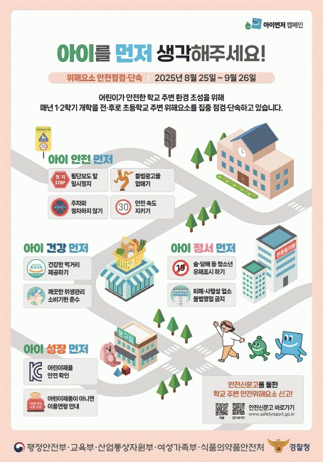 À̹ø Á¤ºñ¿¡´Â ÀÚÄ¡±¸, À¯°ü±â°ü, ¹Î°£´Üü µîÀÌ ÇÔ²² ¡ã¾î¸°À̺¸È£±¸¿ª ¹× Çб³ ÁÖº¯ ÅëÇзÎÀÇ ³ëÈÄ °£ÆÇ ¾ÈÀü Á¡°Ë ¡ã¾î¸°ÀÌ º¸Çà ¾ÈÀüÀ» À§ÇùÇÏ´Â ±¤°í¹° Á¤ºñ ¡ãÀ½¶õ¡¤ÅðÆóÀû Àü´ÜÁö µî ºÒ¹ý ±¤°í¹° ´Ü¼ÓÀ» ÁßÁ¡ ÃßÁøÇÑ´Ù.