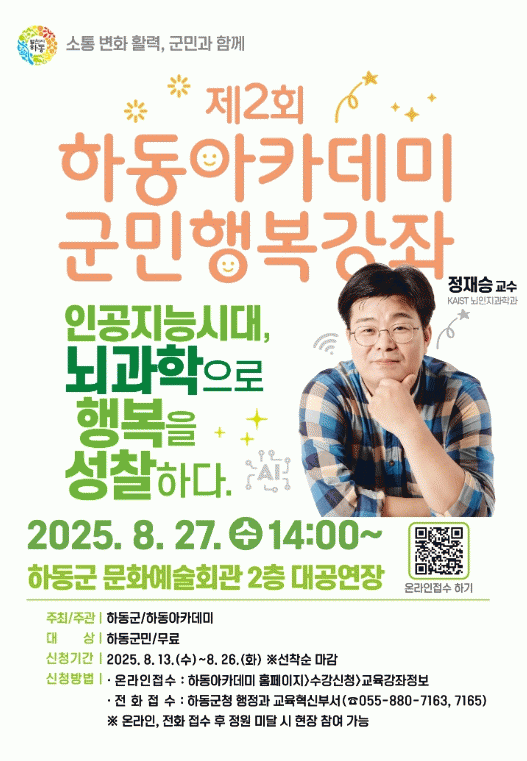 Á¤ ±³¼ö´Â ¡®ÀΰøÁö´É½Ã´ë, ³ú°úÇÐÀ¸·Î ÇູÀ» ¼ºÂûÇÏ´Ù¡¯¶ó´Â ÁÖÁ¦·Î ÀΰøÁö´ÉÀÌ ÀÏ»ó¿¡ ±íÀÌ Ä§ÅõÇÏ´Â Çö´ë »çȸ¿¡¼ ³ú°úÇÐÀû ½Ã°¢À» ÅëÇØ ¿ì¸®°¡ ¾î¶»°Ô ÇູÀ» ´À³¢°í, ¾î¶² ¸¶À½°¡ÁüÀÌ »îÀÇ Áú¿¡ ¿µÇâÀ» ÁÖ´ÂÁö ±íÀÌ ÀÖ°Ô Á¶¸íÇÒ ¿¹Á¤ÀÌ´Ù.